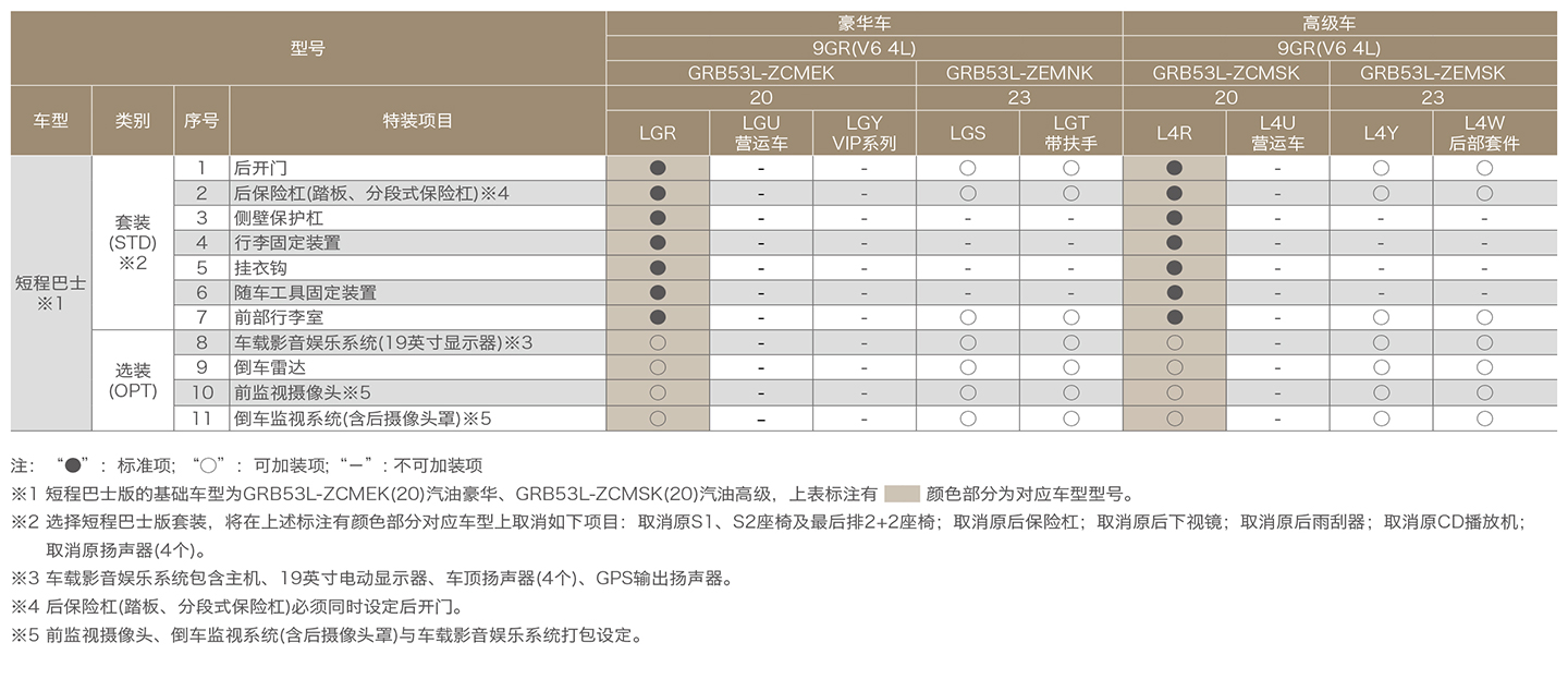 豐田考斯特車型配置